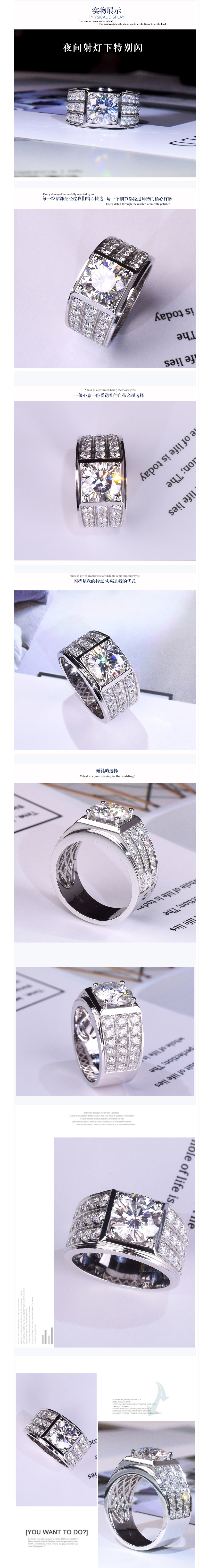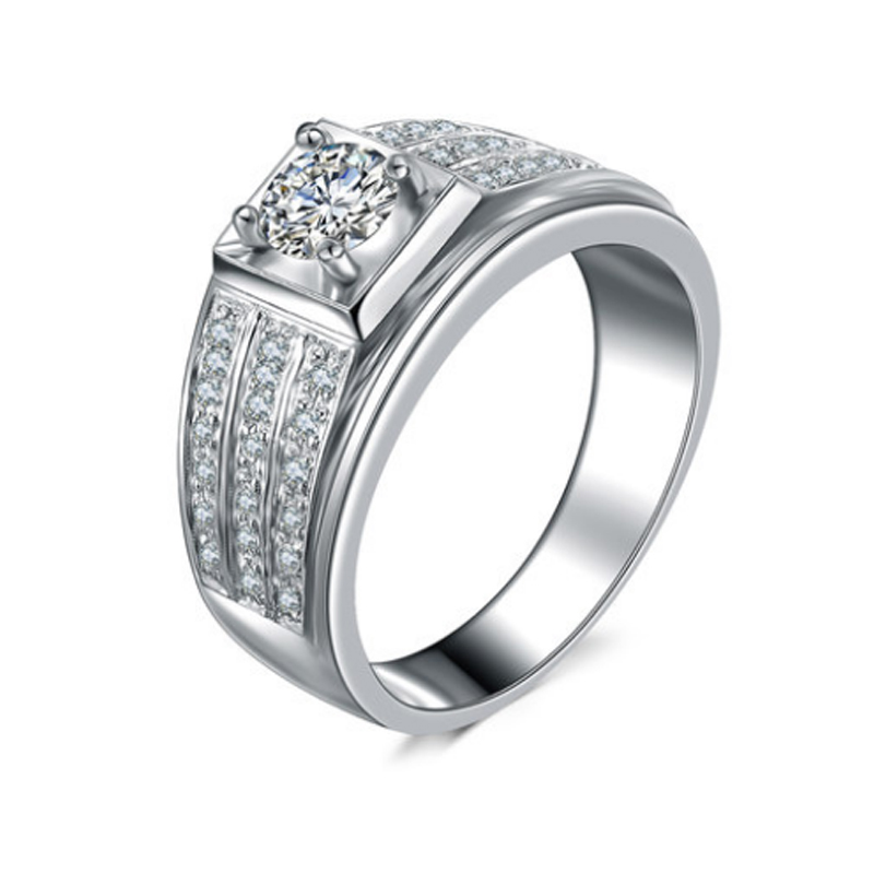 C&C American Mozanstone Ring Male 18K Platinum 1 Carat Diamo