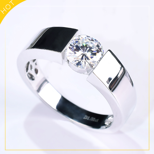 American genuine Mozanstone Ring Male 18K Platinum 1-Carat D