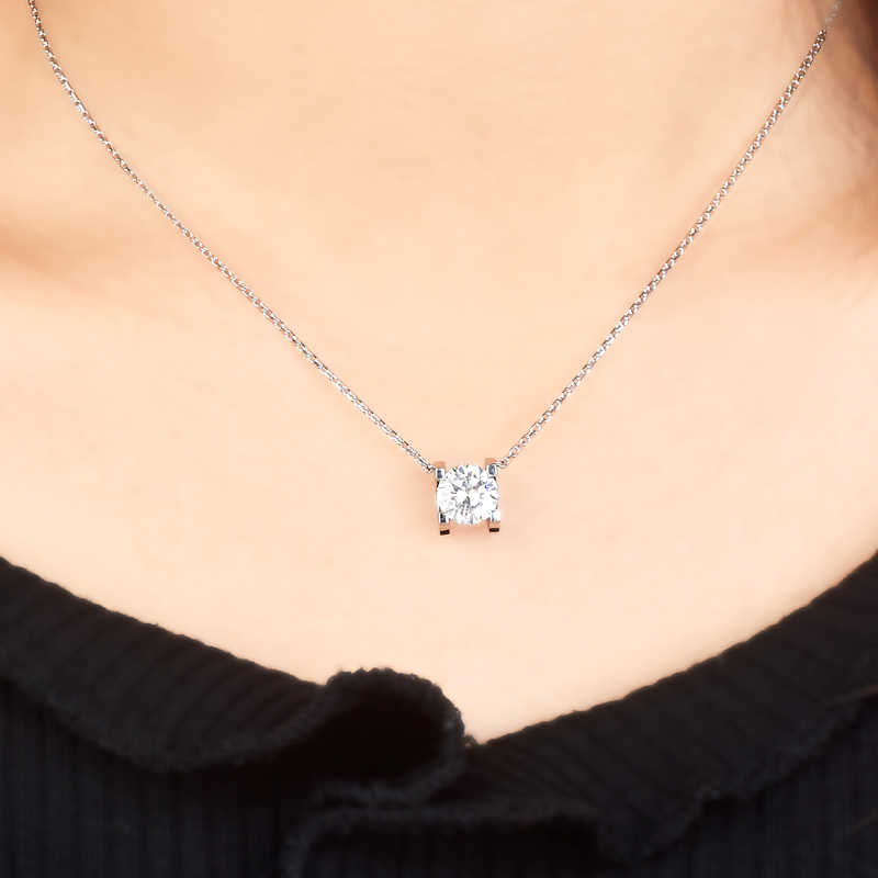 钻爱美国莫桑石吊坠18K白金女双C牛头款1克拉钻石